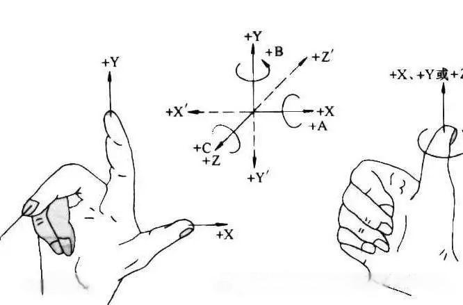 - 旋轉(zhuǎn)的右手法則 - 右手大拇指指向圍繞旋轉(zhuǎn)軸的正方向(+X, +Y, 或+Z)。手自然卷曲的方向?yàn)閲@該軸的正旋轉(zhuǎn)方向。負(fù)旋轉(zhuǎn)方向?yàn)橄喾捶较颉?