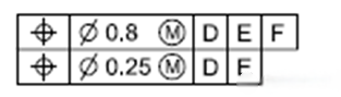 復(fù)合位置度公差控制框只需一個(gè)位置度符號: