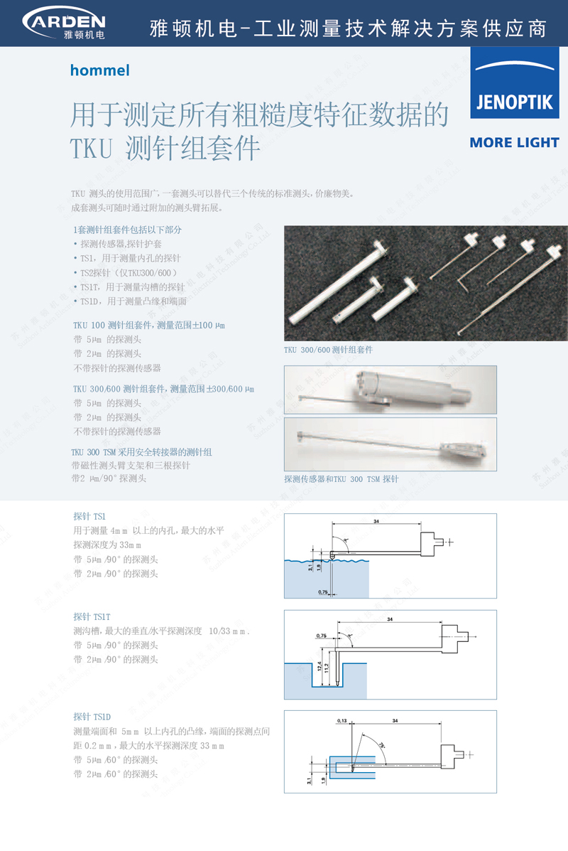 蘇州雅頓機電-德國Jenoptik集團中國區(qū)的授權(quán)經(jīng)銷商,為國內(nèi)外制造企業(yè)提供全面的霍梅爾(Hommel)檢測設備和檢測技術(shù)服務。本期應客戶要求,分享一下相關(guān)的配件-德國Jenoptik霍梅爾(Hommel)測針、測頭、測頭臂等探測系統(tǒng)附件知識。